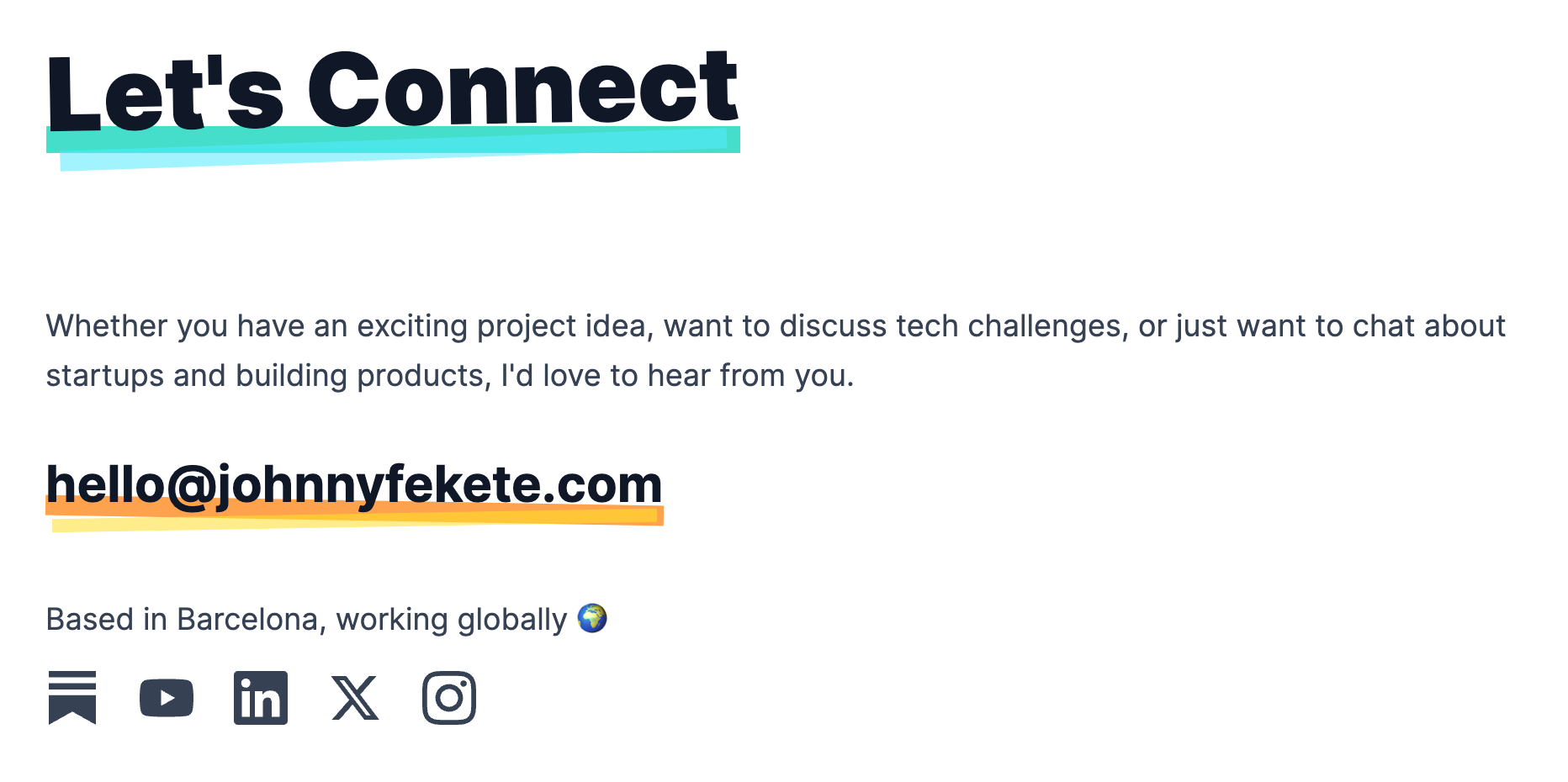 One thing stood out: the ones I liked didn’t have a boring contact form. Instead, they simply linked their social links and had their email address publicly visible.